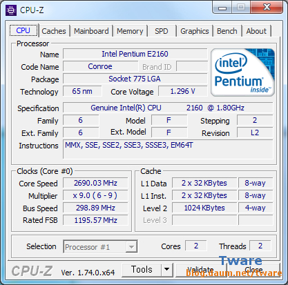 FSB를 더 잘 올리기 위한 옵션 x , 전압조절 x 인 애즈락 콘로 1333-D667 리비전 1.0 보드에서 기사의 E2160를 은박신공으로 FSB 266으로 인식하게 만들고 추가로 299까지 올린 경우. 10배수인 E2180의 경우라면 3GHz 까지도 가능하죠. FSB 299 까지 올리면 당시 CPU 7~8만원 + 보드 5만이라는 저렴한 가격으로 콘로 부럽지 않은 성능. 물론 게임에서는 더 큰 캐시가 있는 코어 브랜드 쪽이 확실히 좋지만, 가격대비로 보면...