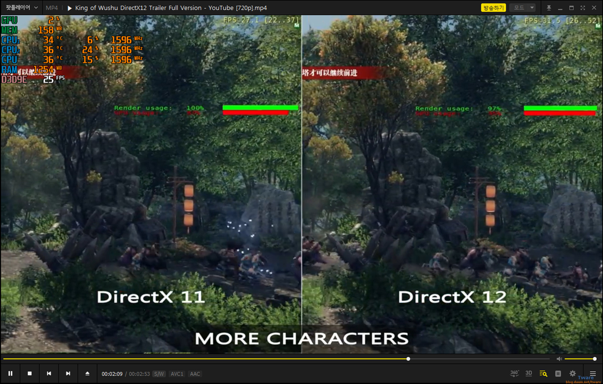 1280 x 720 동영상 팟플레이어에서 소프트웨어(CPU)로 재생