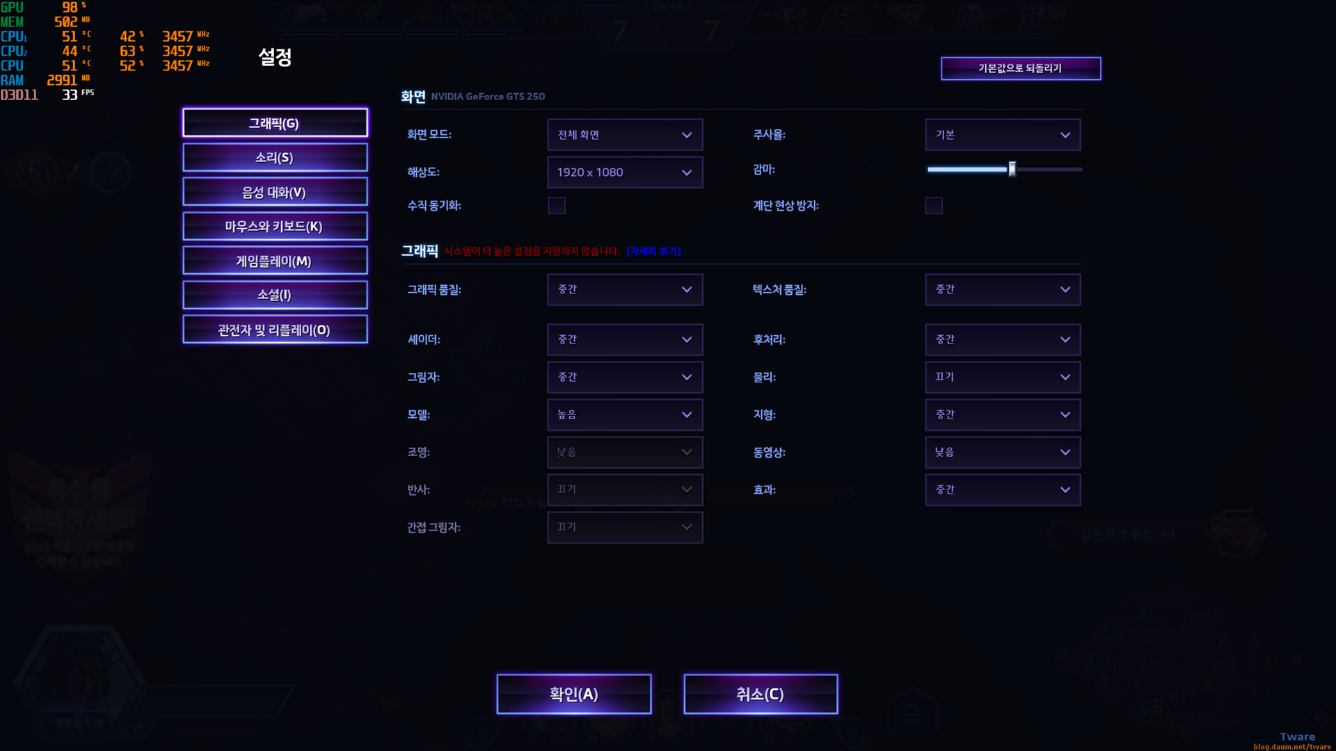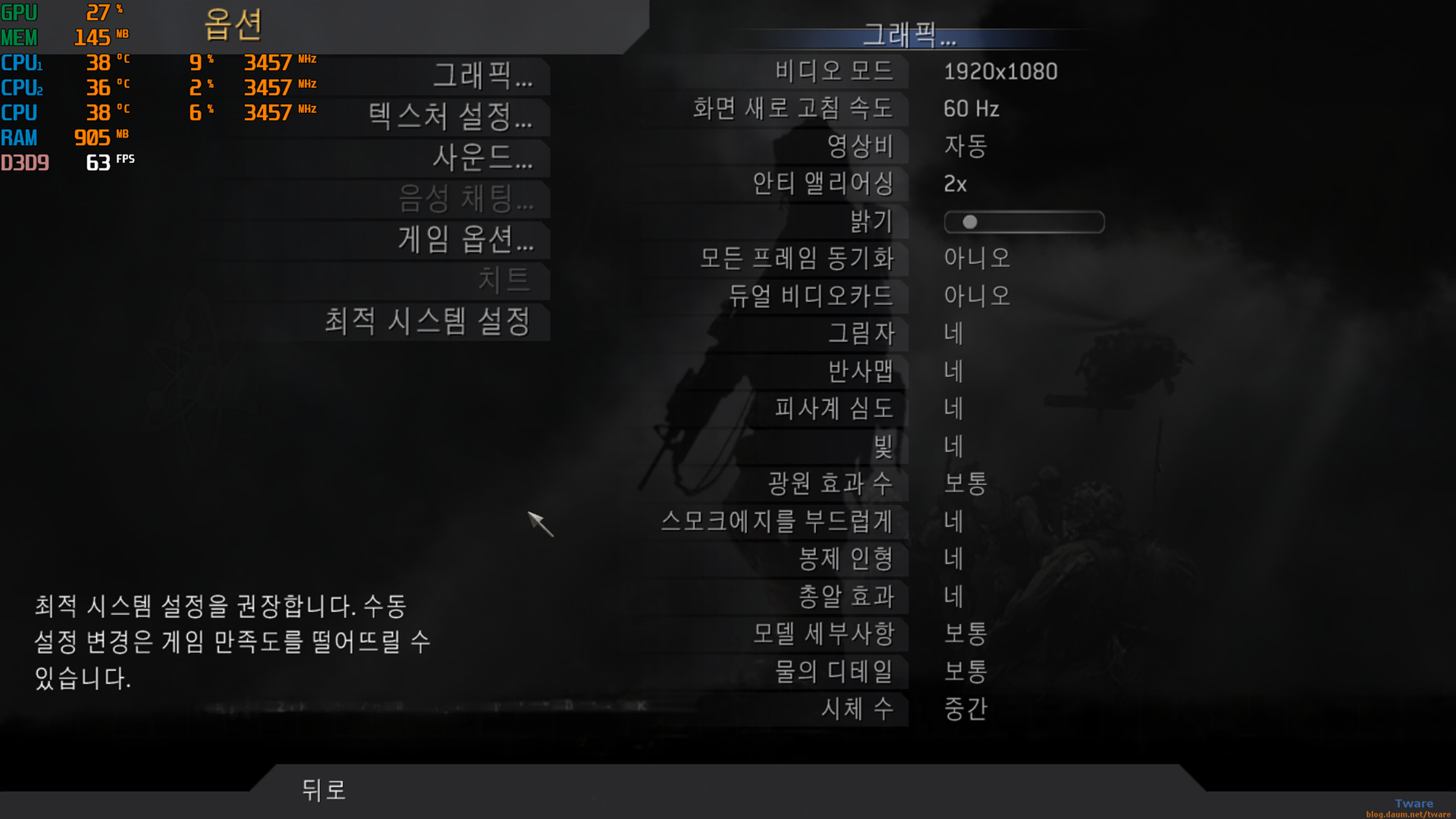 1920 x 1080. 안티알리아싱 no. 그외 최고 옵션.