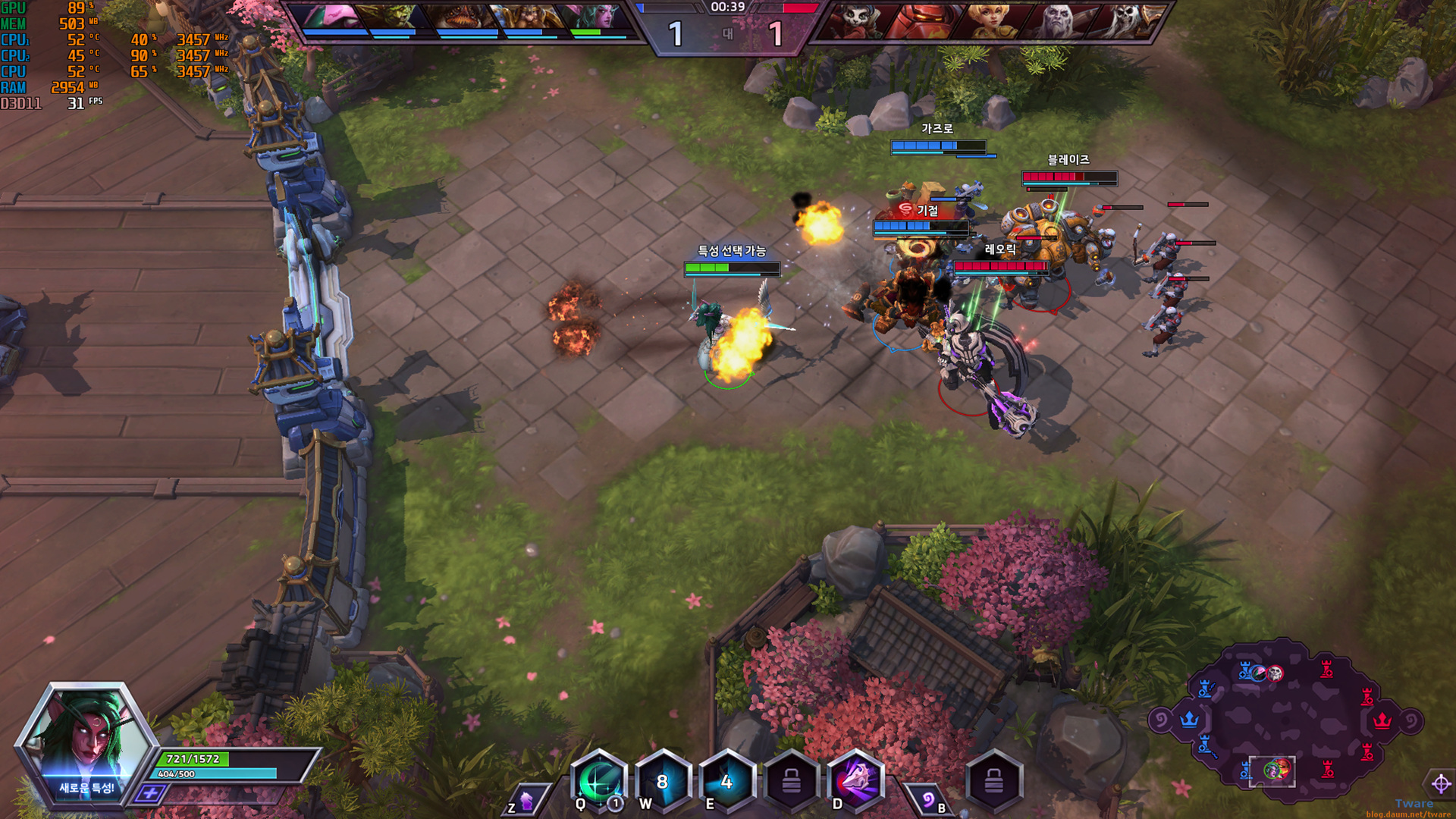 E5300 + 4GB (인식 3.12GB) + 지포스 250 512MB. 히오로즈 오브 더 스톰 1920 x 1080. (945GC는 구형 945G랑 다를바 없기에 보드 자체가 3.2GB 정도? 이상을 쓸 수 없습니다. 윈도 비트 관계 없이요. 4GB 이상을 쓰려면 콘로와 함께 나온 965 (8BG 가능) 이상을 써야 합니다. 또는 다음 세대 저가형 G31 부터. 945 같은 저가형 구형 칩셋은 메모리 리메핑 옵션이 없습니다. 이게 있어야 4GB 이상을 쓰죠. 제 G31 보드는 최대 DDR2 2GB x 2개 해서 최대 4GB 끼울 수 있고, 윈도 64비트에서 4GB로 나오는데, 여기저기서 보면 안되는 보드도 있는거 같고, 바이오스 업으로 된다 라는 분도 계시고 그래요. 검색을 해보니 G31MX-K 보드도 초기 바이오스에서는 4GB가 안됐다고 하네요 (진짜 초기 바이오스에는 옵션 추가가 안됐다가, 추가가 된건지... 초기 바이오스는 기본값이 꺼져있다가, 후기 바이오스는 기본값이 켜진거로 바뀌어서 그런건지는 알 수는 없고.... 제가 초기 바이오스를 써보지 않아서.....).(중요한건 인텔 데이터시트를 (G31/P31 Express Chipset Datasheet 328쪽 문서) 보면 G31 칩셋은 물리 메모리 리 매핑을 지원 합니다 (965 계열도 같은 내용). 원래 안되는걸 바이오스에서 어떻게 해서 지원할 수가 없어요. 945 계열은 Datasheet에 이 내용이 없구요. 945GC 저가형 칩셋은 결국 3.12GB ~ 3.25GB 정도가 실제 최대 사용 가능한 메모리 인데, 이게 예전 게임일 수록 그냥 2GB+1GB랑 2GB+2GB가 별 차이가 없는데, 근래 게임일 수록 분명하게 약간 차이가 납니다. 실제 사용 가능한 메모리 차이가 겨우 0.1 ~ 0.2GB 인데 말이죠. 아무래도 2GB+1GB로 하면, 상위 1GB는 싱글 채널로 작동이 되어서 그런지 차이가 있어요.