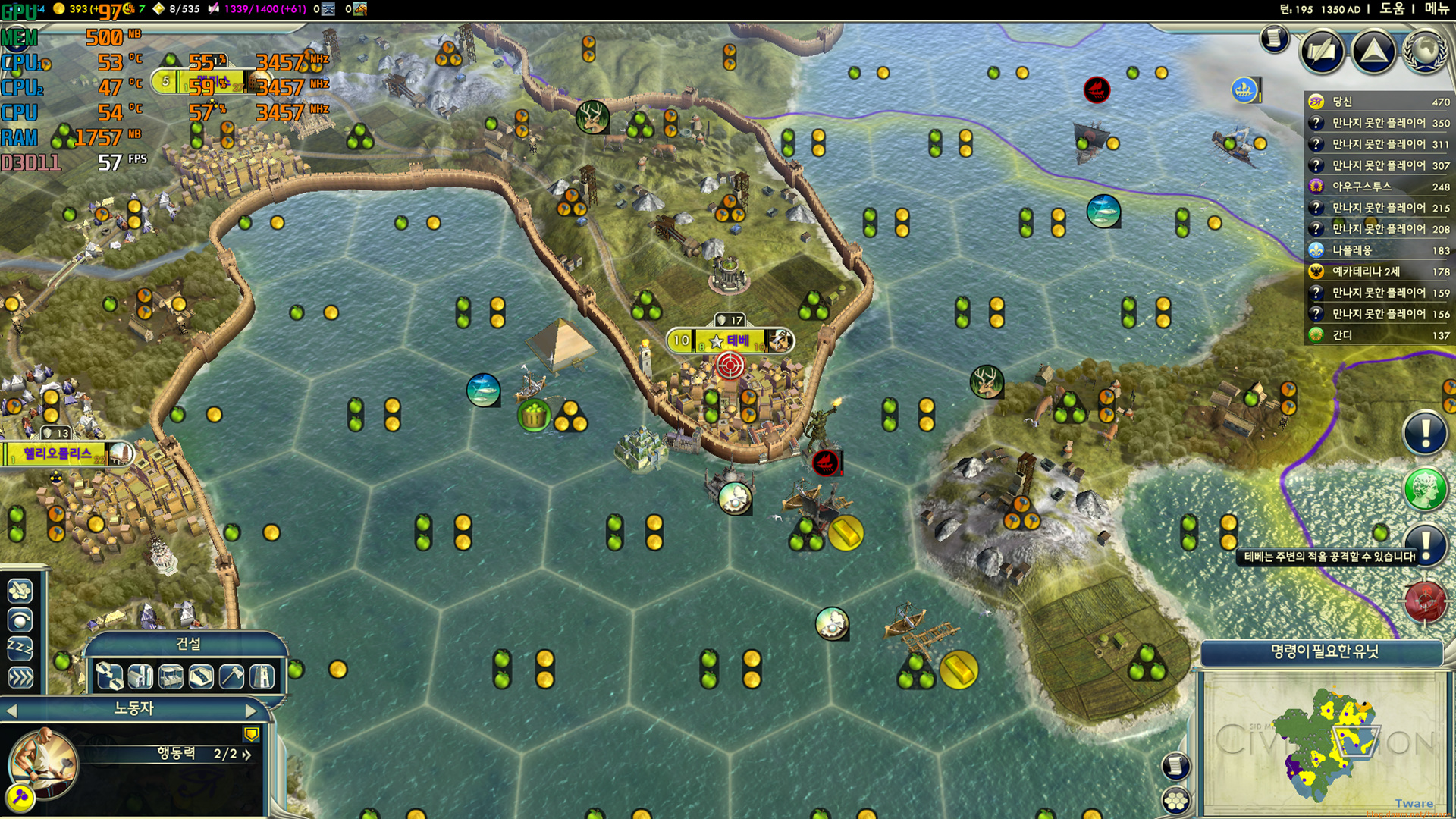 E5300 은박신공 + 지포스 250. 문명5 1920 x 1080