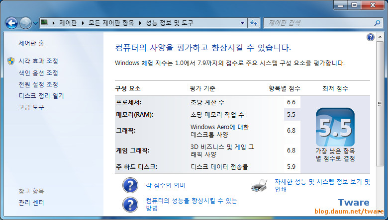 (이 점수는 어짜피 그냥 참고적인 거긴 하지만.. 3.2Ghz 펜티엄 E6700도 6.6점..)