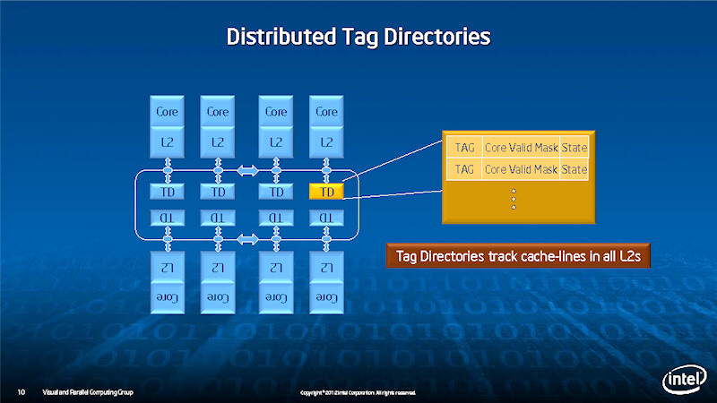 TD는 L2 캐시의 태그 디렉토리에서 각 코어마다 갖추고 있다. 어떤 주소의 메모리 내용이 어떤 L2에 캐시되어 있는지를 추적하고 있다.