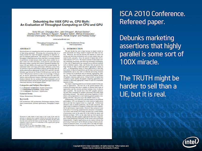 즉, GPU 메이커의 비교 수치는 CPU 측을 낮게 추정하고 있다고 비판하고 있다.
