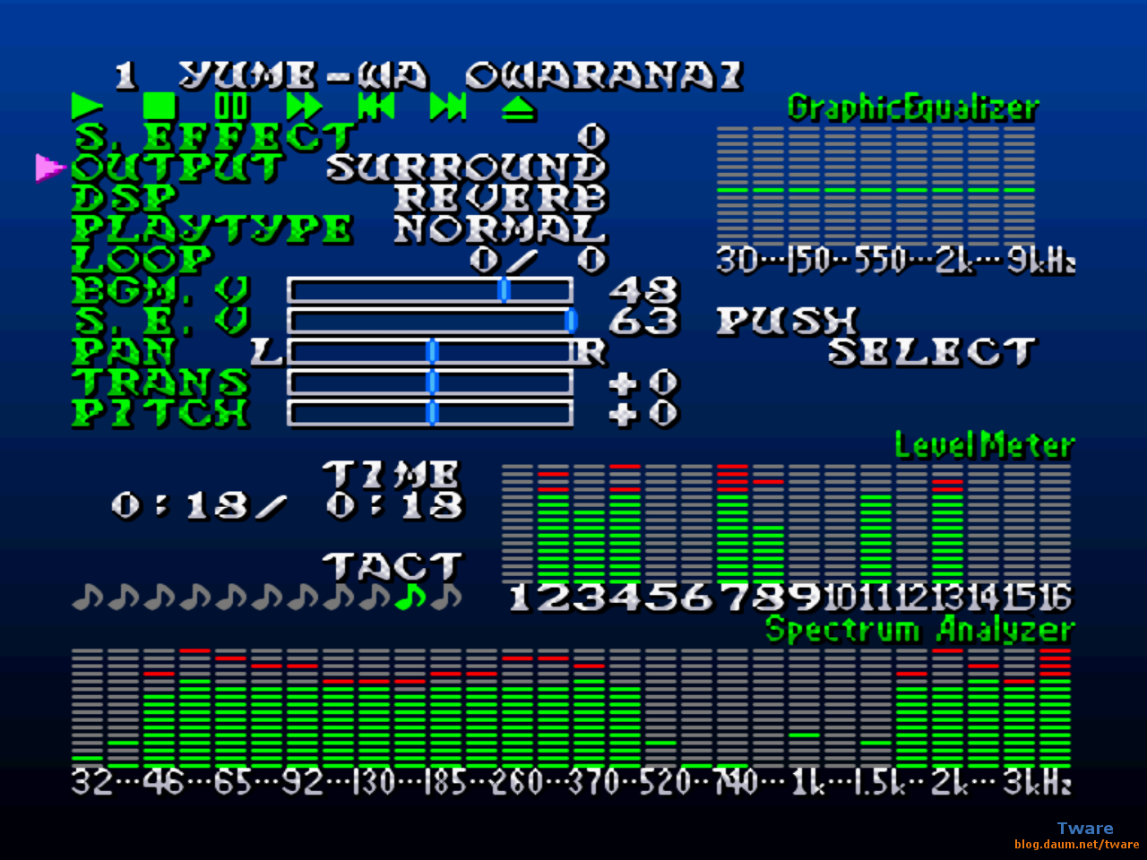 F1 키를 누르면, 스크린샷, 프레임 보이기/끄기, 음악 SPC 저장이 가능 합니다.