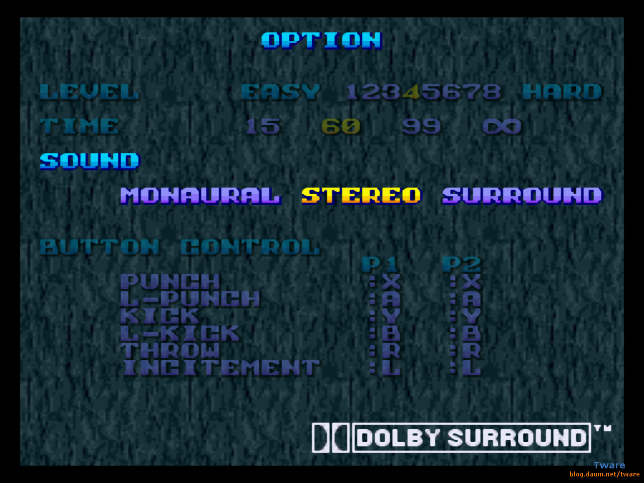 스트리트 파이터2 (J) 일본판 옵션화면.