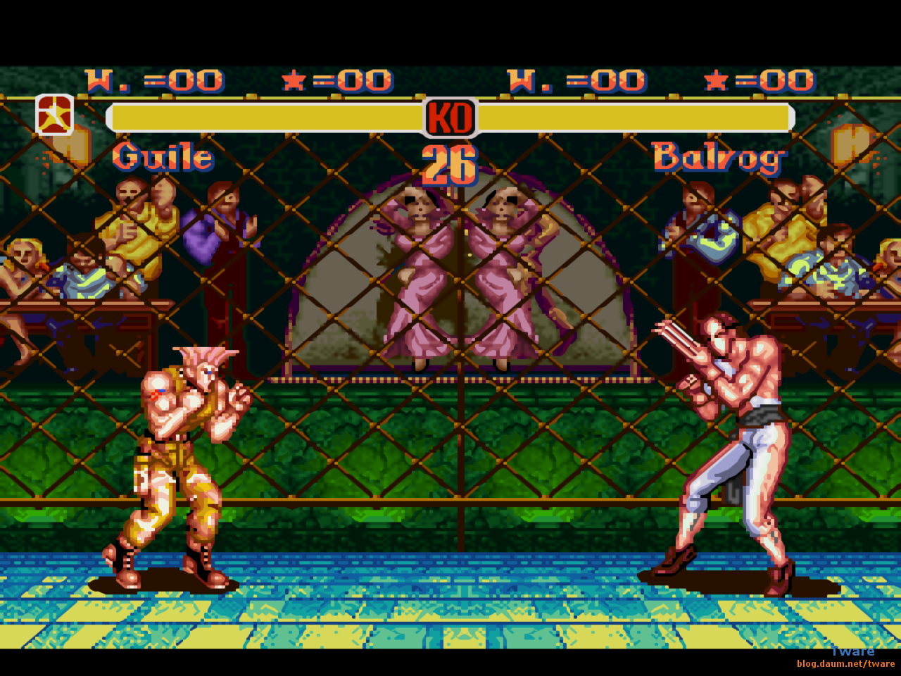 ZSNES 얘기는 아니지만, 스트리트 파이터2 영상을 보면 그래픽 색상도 조금씩 다르고 캐릭터 마다 음악도 (악기) 변한걸 알 수 있는데 오케스트라 음악도 들어 보며 비교해 보세요 (대표적인게 가일의 경우 전에는 트럼펫 같은 소리의 음악이고, 슈퍼의 경우는 전자기타 같은 소리의 음악). 당시 오락실용 기판의 경우는 실제 악기 소리를 낼 수 없어서 어쩔 수 없이 기계음으로 음악을 냈지만, 슈패의 경우는 좀 어설프지만 (오락기 라는 제한된 가격상. 악기 소리는 소리인데, 초저음질 음악 파일이나, 마치 전화기로 들을 때 같은 가벼운 소리.) 악기 소리를 낼 수 있어서 잘만 만들면 들을만 하죠. 베가(일본판 발로그. 스페인) 음악이 이렇게 좋았었다니...