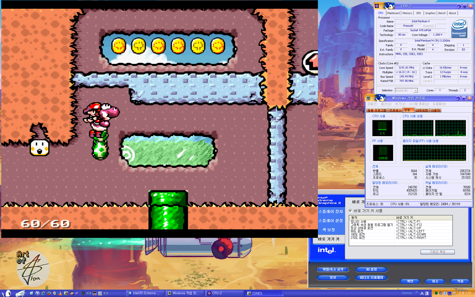 펜티엄4 3.2E 프레스캇 + 865G 칩셋 내장 그래픽에서 돌린 ZSNES.