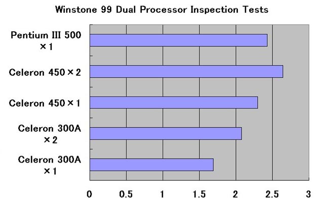 현재 Pentium III 500MHz가 8만엔 전후로 판매되고 있는 것을 감안하면, PPGA 버전 Celeron 300A를 Dual로 450MHz 동작시킨 때의 비용당 성능은 매우 높다 (PPGA 버전 Celeron 300A와 SL-02A 2개씩 사도 25,000엔으로 충분히 잔돈이 생긴다). 물론 이번 이용한 벤치마크 테스트는 Pentium III에서 추가된 명령군 "SSE" (Streaming Single Instruction Multiple Data Extensions)에 대응하고 있지 않기 때문에, Pentium III는 단순히 고속 Pentium II로 밖에 이용되고 있지 않지만, SSE를 지원하는 응용 프로그램이 현시점에서는 거의 존재하지 않는 것을 생각하면 타당한 평가일 것이다. 또한 화제의 BeOS도 위의 환경에서 Dual CPU로서 문제없이 작동하는 것도 덧붙여 둔다.
