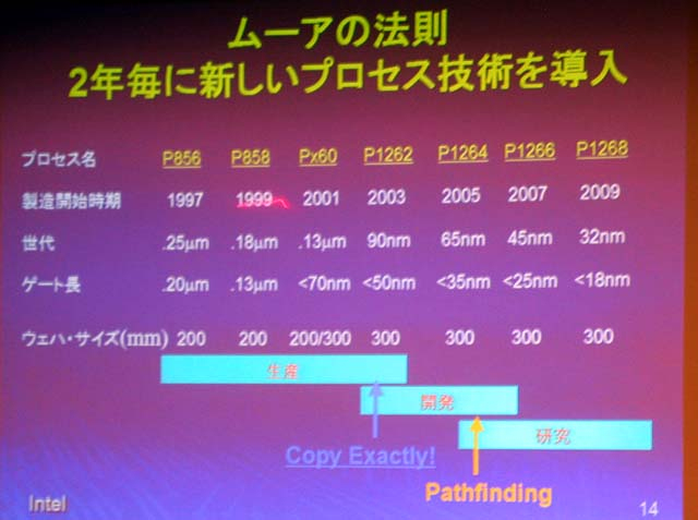 설명회에서는 인텔 주식회사 이사 개발 · 제조 기술 본부장 성 코지 씨가 미국 오리건 Intel의 나노 기술 연구 시설에 대해 설명. 그러면 Intel 기술 · 제조 본부 로직 기술 개발 부문 컴포넌트 리서치 디렉터 제럴드 마싯쿠 씨가 이 기술에 대해 설명했다.