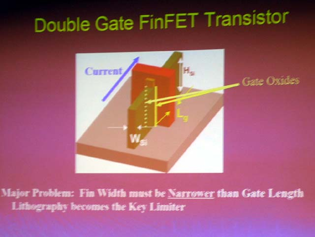 Intel은 평면형 트랜지스터의 미세화를 추진하고 있으며, 로드맵대로 가면 2009년에는 게이트 길이 15nm, 32nm 노드까지 미세화가 가능하게 된다고 한다. 그러나 planar 형 그대로 미세화를 계속하면 누설 전류가 높아져 불필요한 전력 소비와 구동 전압의 향상 등의 폐해가 일어난다. 인텔이 2001년 11월에 발표 한 "테라 헤르츠 트랜지스터"는 고유 전율 게이트 절연막 (High-k)과 렌즈 소스 드레인 구조의 채용으로 따로 누설 전류를 감소하는 방법 이었지만, 미세화를 진행 시키면 나노급 미세 실리콘 층의 두께 제어가 필요한 등 제조상의 문제도 있었다