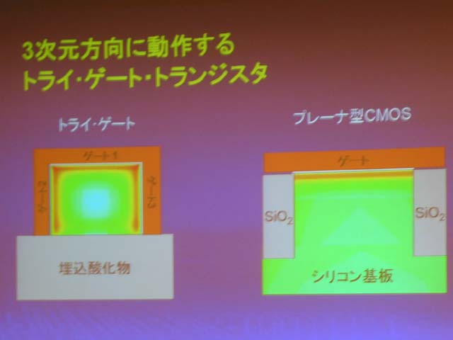 인텔 주식회사는(인텔 재팬) 19일 언론을 대상으로 설명회를 개최하고 새로운 3차원 구조의 트랜지스터 "트라이 게이트 트랜지스터 '를 발표했다.