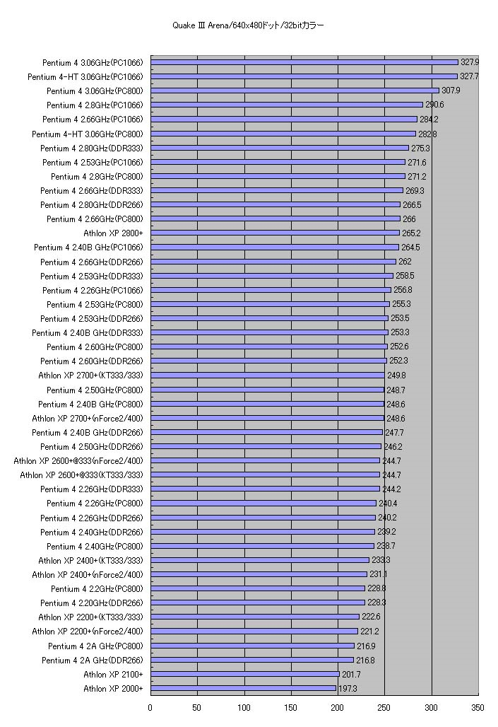 결과는 본대로에서 차트에 게재 된 모든 벤치 마크에서 Pentium 4 3.06GHz는 톱이 되었다. HT 기술을 활성화하거나 비활성화 교체해 봤지만, 어느 쪽이든 Pentium 4 3.06GHz는 모두 톱의 지위를 얻었다. 이에 따라 Pentium 4 3.06GHz는 현재 최고 성능의 CPU라고 말해도 좋을 것이다.