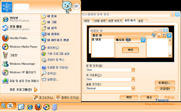 (순수 윈도XP에서는 적용이 되지 않습니다. 외부 테마 지원 프로그램을 설치하시거나,