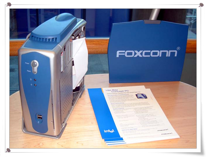 전시된 개념 PC의 하나 Foxconn의 Hilo Bay. Depot Bay라는 Intel의 개념 마더 보드 (i850 기반)를 채용한 Pentium 4 PC. 온도에 따라 냉각 팬의 회전 수를 제어하고 조금이라도 조용한 PC가 되자는 시도는 회장에 전시된 많은 Pentium 4 PC 공통.