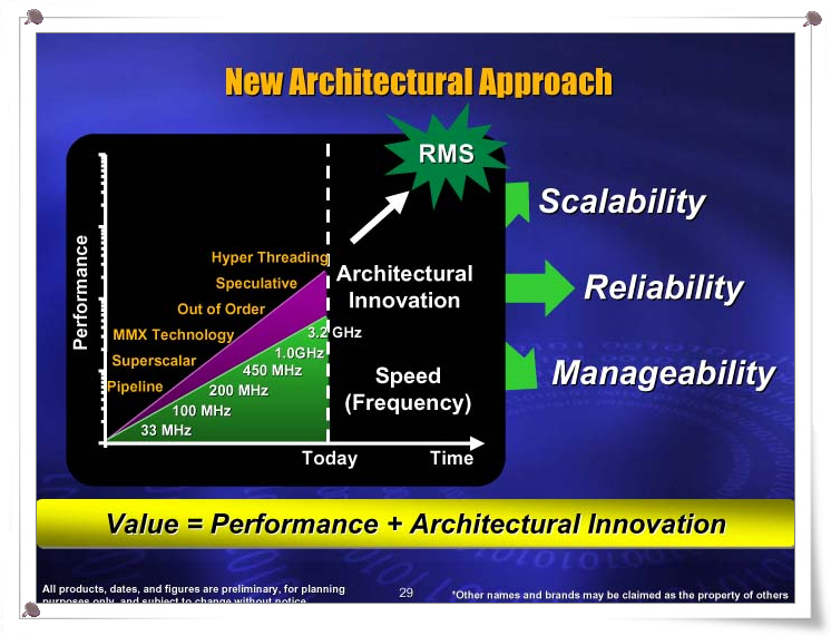 "지금의 응용 프로그램은 직렬 스트림의 실행을 전제로 알고리즘이 개발되고 있다. 이러한 응용 프로그램을 병렬로 실행하는 것은 확실히 어렵다. 그러나 미래의 응용 프로그램의 알고리즘은 더 병렬 실행에 적합한 것으로 될 것 "(Gelsinger 씨)