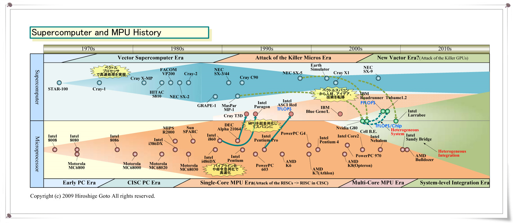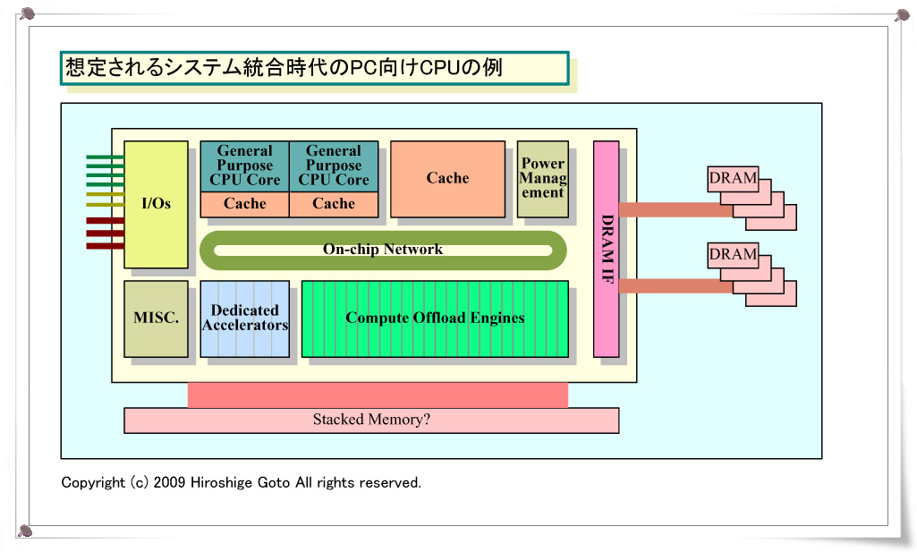 먼저 근본적으로 "무어의 법칙"자체가 벽에 가까워지고 있어 동 법률의 기하 급수적인 성장에 업혀가는 것이 안되게 진행 되고 있다. 한편, 소비 전력의 벽은 엄연히 존재하고 점점 어려워지고 있다. 오히려 TDP (Thermal Design Power : 열 설계 전력) 및 평균 소비 전력의 인하에 대한 요구는 강해지는 반면 것이다.