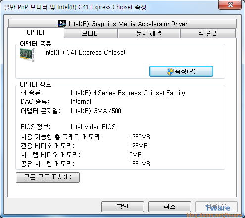 G4 시리즈 (G41,G45,Q45 등) 비스타 / 윈7 32비트 드라이버.