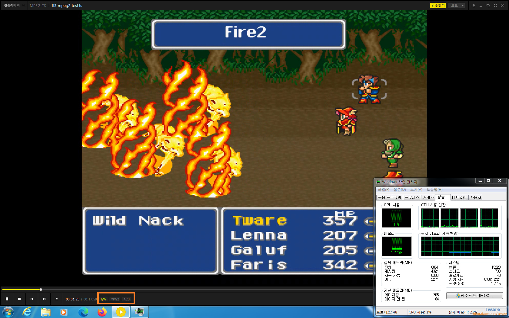 가속 기능을 켜면 화면이 깨진다 라고 해서.. 직접 MPEG2 1080P 영상을 만들고,