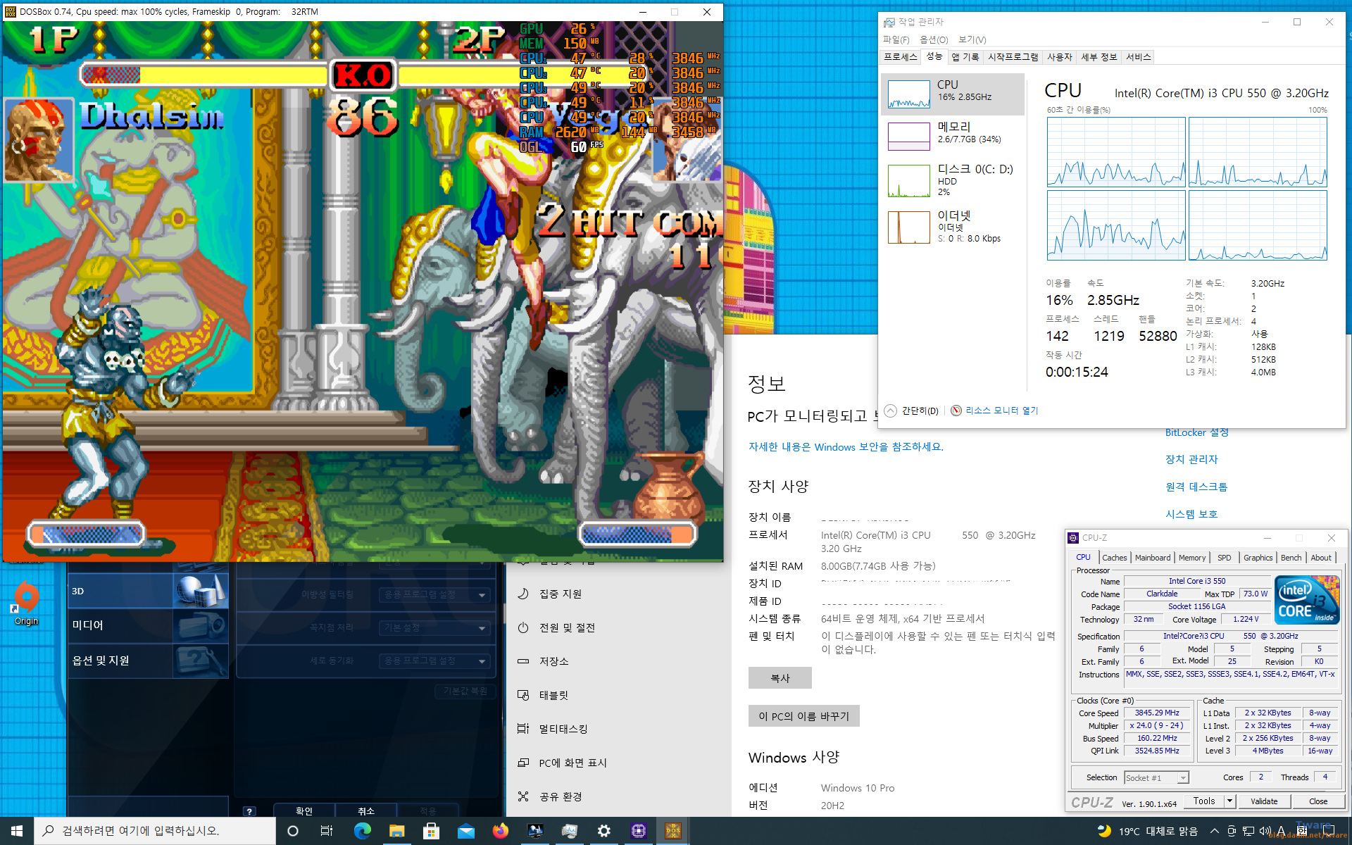 윈10 64비트 + G41 보드 + E8500 + 램 싱글채널. 도스박스 그래픽 출력 오픈지엘 설정.