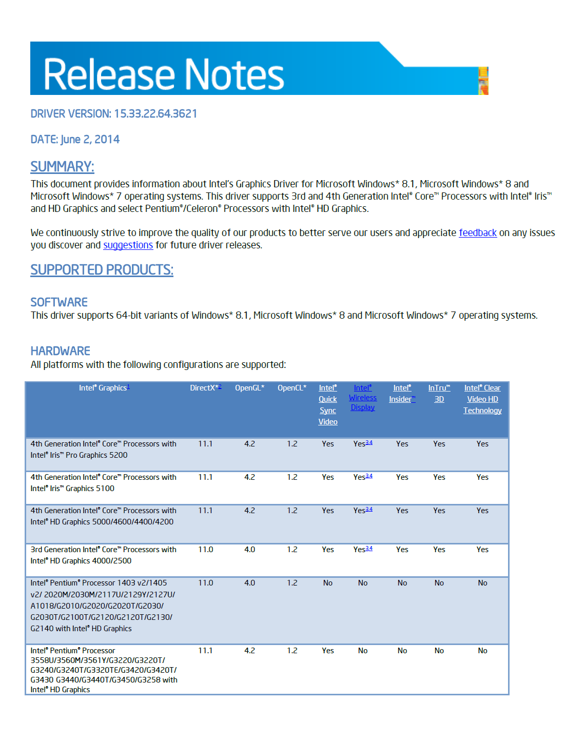 9. 8번에서의 제품군은 위에 3 ~ 6에서 설명한 대로 CPU 세대 (1세대, 2세대 ~ 코어 i 시리즈)에 맞게, 셀러론 펜티엄도 같은 것이니 다운 받아서 설치하면 됩니다. (적어도 하스웰 세대까지는 CPU 세대마다 GPU 아키텍처가 다르고, 같은 CPU 세대는(i7,i5,i3,펜티엄,셀러론 상관없이) 그래픽 코어의 숫자가 다를뿐 그래픽 아키텍처가 동일하기 때문에 앞으로 바뀌지 않으면 그대로 적용하면 됩니다.)