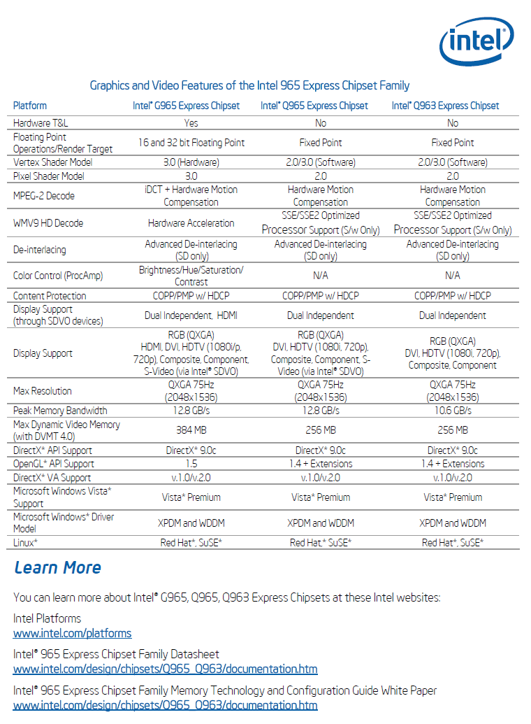 GMA X3000 (G965), GMA 3000 (Q965, Q963).