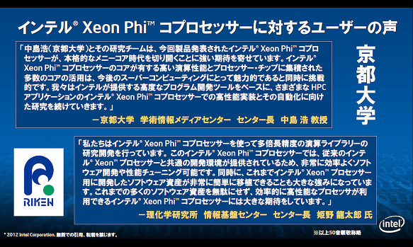 Xeon Phi 대한 국내 연구 기관에서 기대의 목소리 (출처 : Intel)
