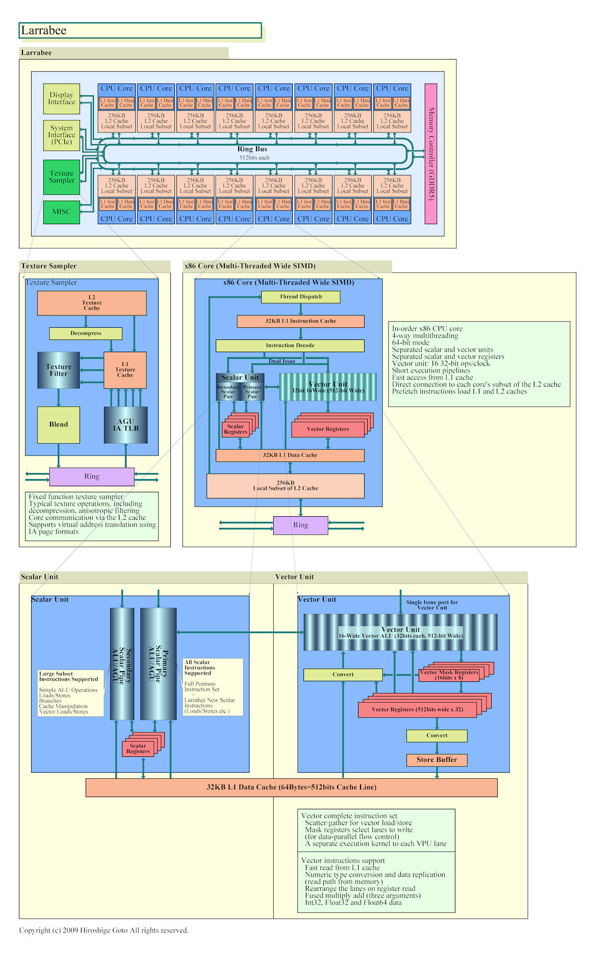 "Larrabee 아키텍처의 혁신에 대한 몇 가지 매우 중요한 점이있다. 아마도 기능"균형 세트 "라는 말을 사용하는 것이 올바른 것이다.
