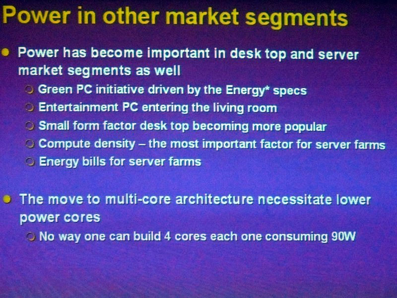 대부분의 PC용 응용 프로그램은 사용 시간의 대부분 CPU가 아이들 상태에 있다. 따라서 아이들 전력 소비를 억제하면 평균 소비 전력을 낮출 수 있다 Friedman 씨는 설명한다.