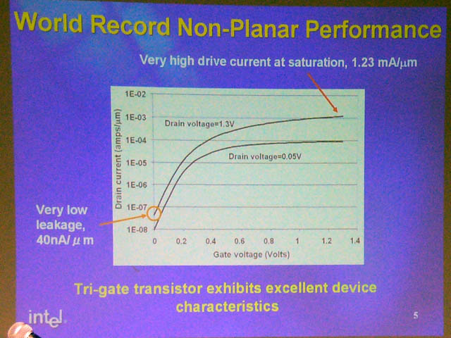 또한 트라이 게이트 트랜지스터는 누설 전류가 평면(planar)형 보다 크게 낮다는 장점도 겸비한다.
