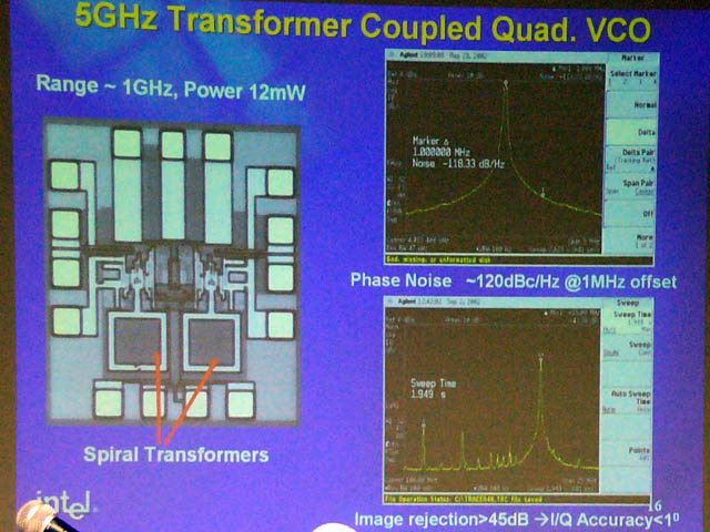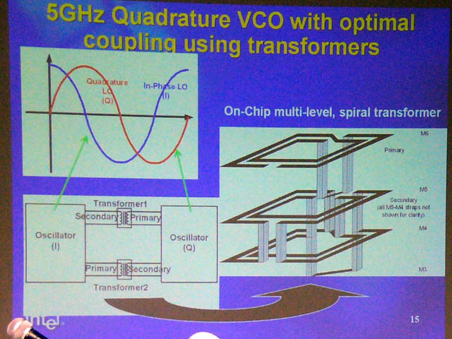 5GHz 변압기 결합형 VCO에서 사용되는 트랜스 포머는 패시브 타입으로 소음이 적고, I 값과 Q 값의 각도의 차이를 ± 2도 이내로 억제하고 있다고 한다.