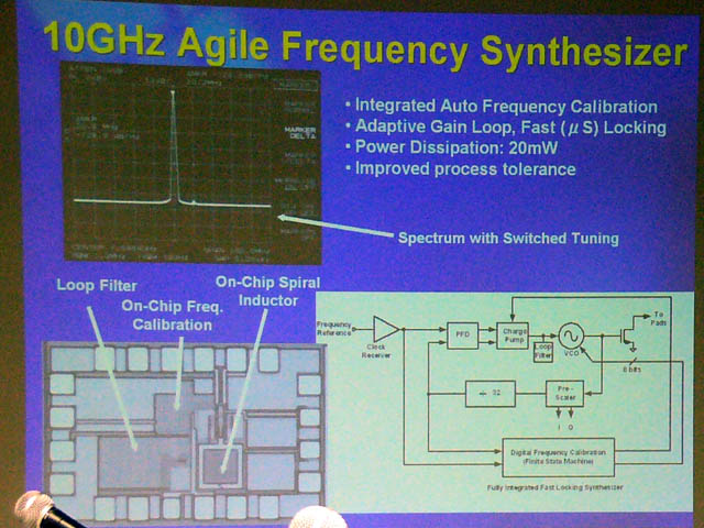 10GHz 주파수 합성기는 10GHz까지의 주파수 대역을 지원하는 CMOS 통합 무선 칩 루프 필터, 주파수 교정기, 나선형 인덕터 등을 내장하고 있다.
