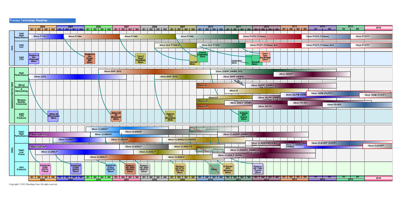 GPU에서 보면, NVIDIA 말해서, 20nm 것으로 보이는 "Maxwell"(맥스웰)에서 문제가 두드러지고, 16nm 추측되는 "Volta"(볼타)에서는 더욱 문제가 커진다. AMD 말로는 20nm의 GPU "Volcanic Islands"세대에서 문제가 시작된다. 따라서 GPU 벤더는 하이엔드 공정을 전환하지만, 하위 라인업은 28nm의 사용을 계속한다 말한다.