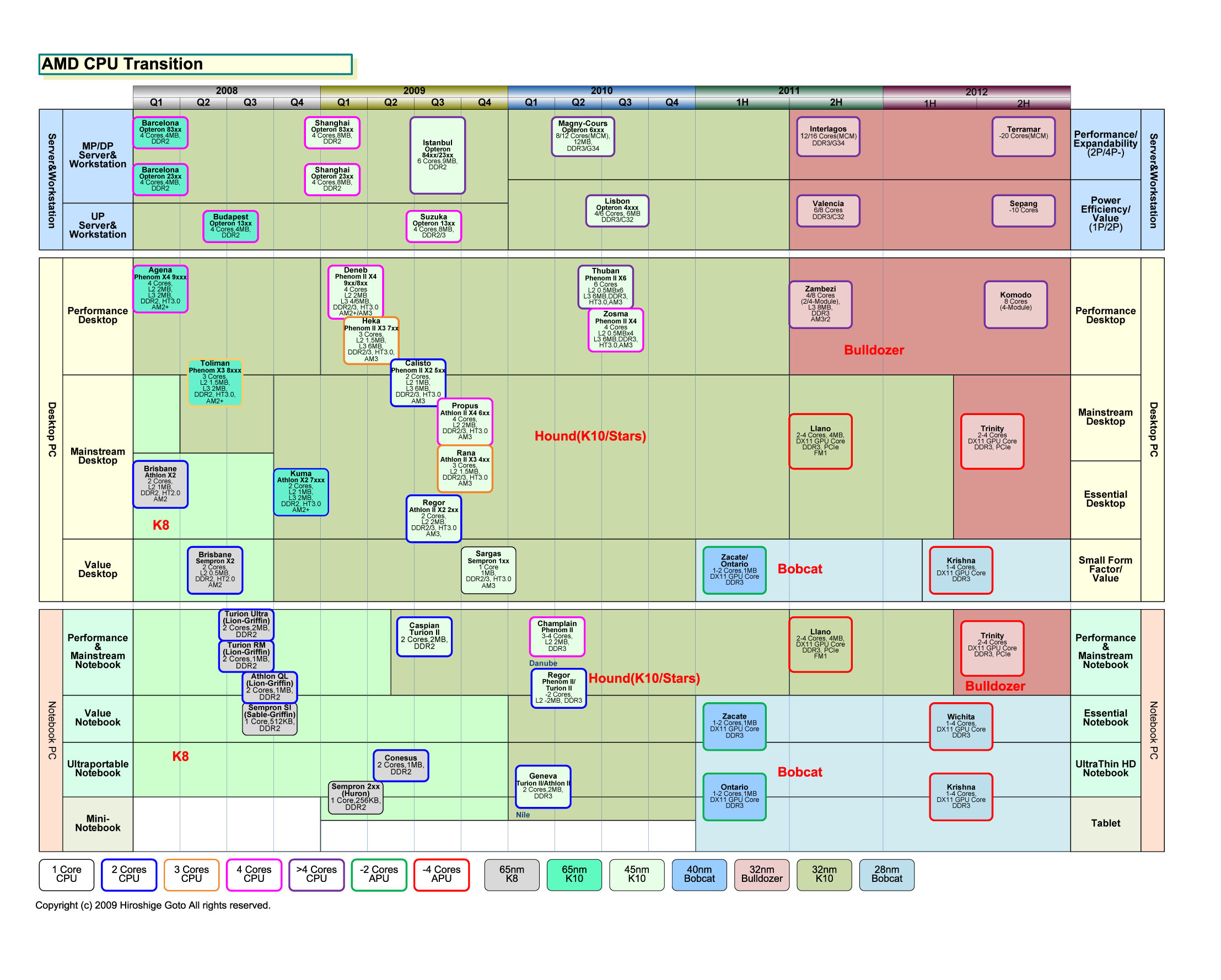 AMD의 세대 별 코어 크기
