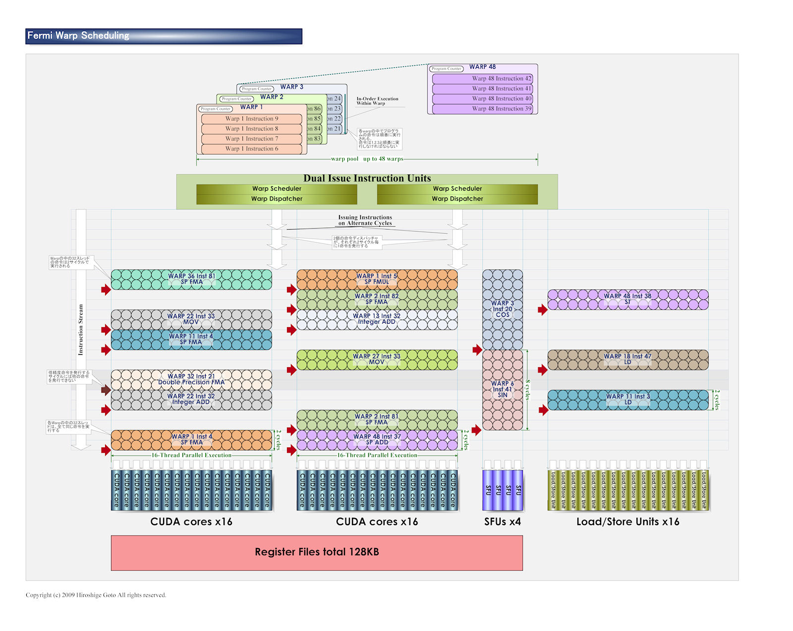 그렇다면 AMD가 ATI Technologies를 인수한 것처럼, NVIDIA를 인수하다면 (가능하다고 할때 이야기) 어떨까? 아마도 그러한 방향의 전개도 없을 것이다. 물론, NVIDIA가 현재 진행하고 있는 것은 GPU의 측면에서 비교적 자유도가 높은 데이터 병렬 코어로 향하는 것으로, Intel 어떤 의미로 노선은 일치하고 있다. 그러나 Intel은 처음부터 CPU를 발전시키는 형태를 원하는 Larrabee를 설계하고, 어떤 의미에서 NVIDIA와 반대 방향에서 진행되고 있다. Larrabee로 기른 자산을 활용하는 것이 아마 지름길일 것이다. 노선이 가깝기 때문에, Intel이 NVIDIA에서 얻을 것은 사실 적다. 예를 들면, NVIDIA 아키텍처의 가장 큰 특별한 장점은 데이터 병렬에 최적화된 스케줄러 등이지만 그것은 Intel에게 불필요한 부분이다.