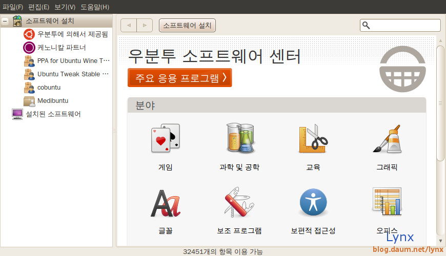 우분투 소프트웨어 창에서 우분투용으로 패키징 된 많은 공개 프로그램을 제공합니다.