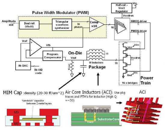 Intel은 "4세대 Intel Core 프로세서 (Haswell)"절전 기능의 열쇠인 통합 전압 레귤레이터 "FIVR (Fully Integrated Voltage Regulator)"의 개요를 점차 밝혔다. Haswell의 FIVR은 온다이 (On-Die)에 구현된 DC-DC 컨버터와 고밀도의 'MIM (metal-insulator-metal) 커패시터, 그것을 온 패키지 "패키지 트레이스 인덕터 (package trace inductor)"을 사용한다. FIVR 단위 중 인덕터 부분만 온다이가 아닌 패키지 측에있다. FIVR의 개요는 2014년 2 월의 반도체 기술 컨퍼런스 ISSCC (IEEE International Solid-State Circuits Conference)에서 공개되었다.