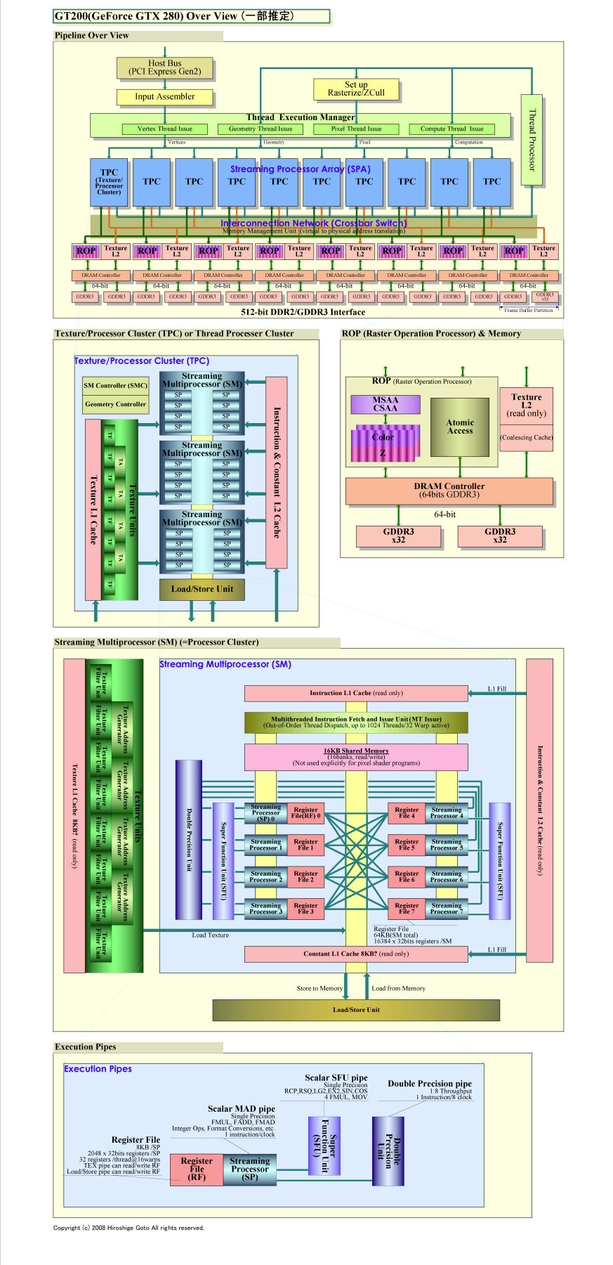 그러나 지난달 명확해진 GT200 에서는, NVIDIA는 AstroGPU에서 지적한 몇 가지 문제를 하드웨어로 해결했다. 이것은 NVIDIA가 앞으로도 범용 컴퓨팅에 병목 부분은 점차 하드웨어를 개량하는 것으로 해결해 가려는 것을 보여주고 있다.