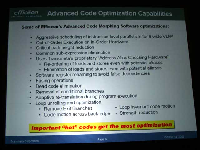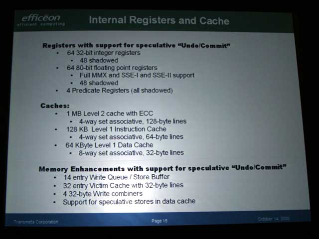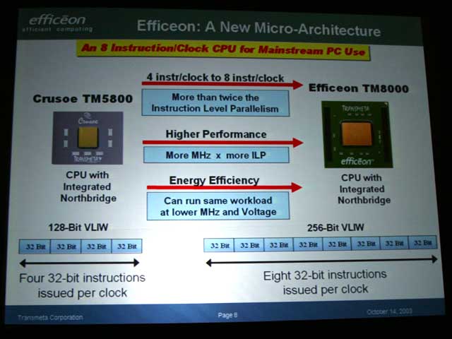 디첼 씨가 발표한 Efficeon 마이크로 아키텍처의 자세한 내용은 다음과 같은 것이다.