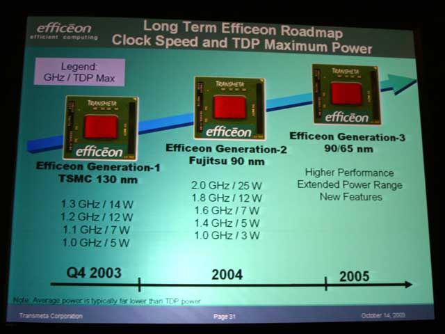Efficeon의 로드맵.