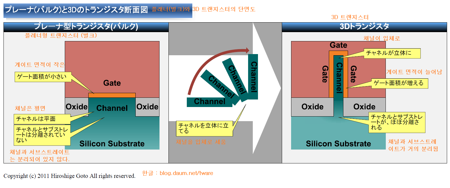 소스 - 채널 - 드레인을 평면에서 입체로 한 3D 트랜지스터
