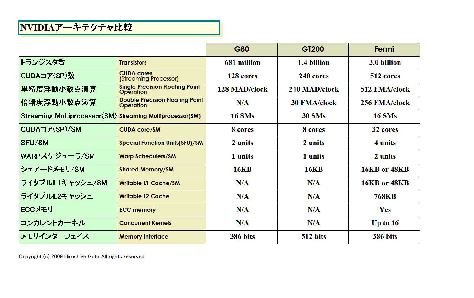 NVIDIA는 GPU 아키텍처에 세대마다 물리학자의 이름을 붙이고 있다. 초대 G80과 그 발전 계인 GT200는 Tesla (테슬라) 계에 속하고 제 2세대가 Fermi이다. 즉, NVIDIA는 이번에 아키텍처의 메이저 체인지를 한다.