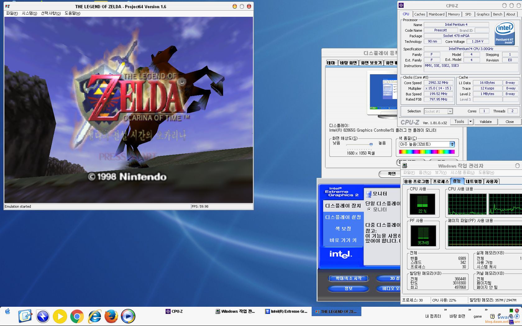 (새로 찍기 귀찮아서, 블로그에 올린 펜티엄4 + Win98se 글에서 찍은 스샷 입니다.
