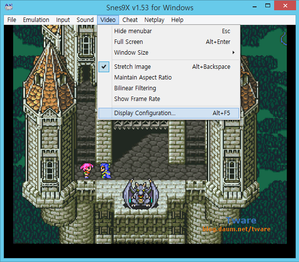 Snes9X 1.53 버전 입니다. 윈도우 8 시리즈에서 성능 저하 없이 전체화면 게임이 가능 합니다. 기본 그래픽 설정이 Direct 3D 입니다. 구버전 1.51 사용자나 1.52 사용자는 업데이트 하세요. (구버전 1.51 에서도 전체화면 게임시 스트레치 옵션을 켜놓고도 하드웨어 스트레치 옵션을 꺼주면 윈도 8 에서도 성능 저하 없이 가능은 한데...)