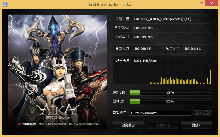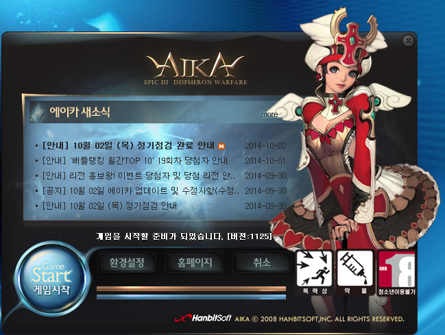 저사양 PC 사용자를 위한 저사양 게임 2 에이카 온라인 입니다. 딱히 다른 이유는 없고, 새로 가입할 필요도 없고 -_-;;;; (그라나도와 같이 한빛에서 서비스) 홈페이지에 있는 게임 사양도 낮아서 골랐습니다. 원래는 더 저사양으로 보이는 위드 인가 먼저 해보려고 했는데.. 이건 한빛에서 하는 건데도 새로 또 가입을 해야 되는지.. 한빛 로그온 해서 가면 접속으로 안나오고 새로 가입해야 되네요.. 귀찮아서.. 에이카로 이동 설치, 실행.