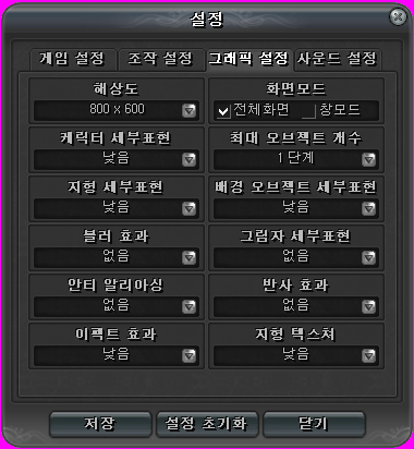 일단 다 최하옵으로, 해상도는 시작하기 전에 정해야 됩니다.