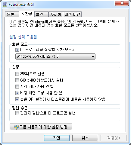 최신 운영체제에서 호환성 모드를 설정해 보세요.