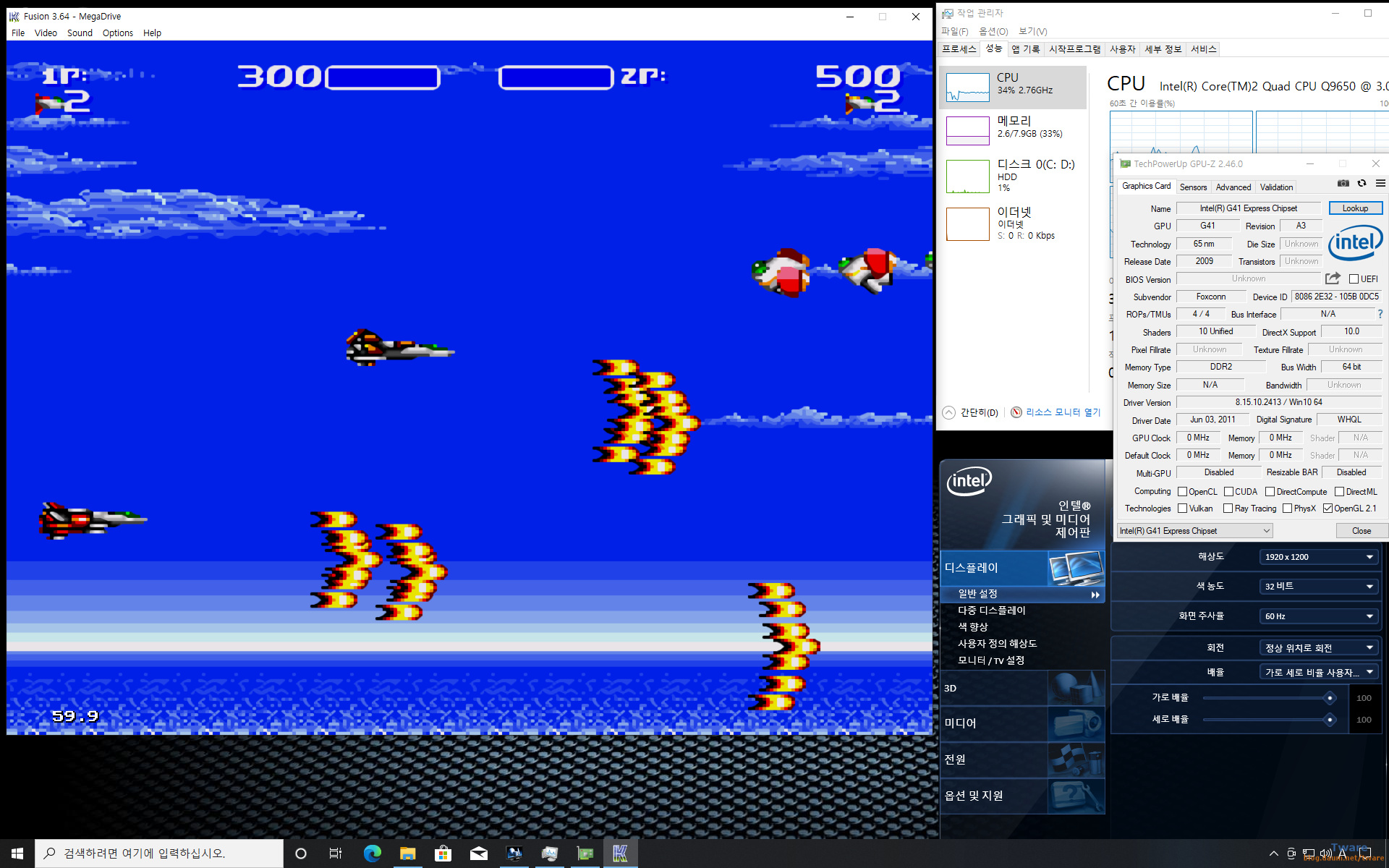 865G 내장 그래픽 1600x1200 Kega Fusion과 타기종 에뮬레이터 및 윈도우 게임 구동.
