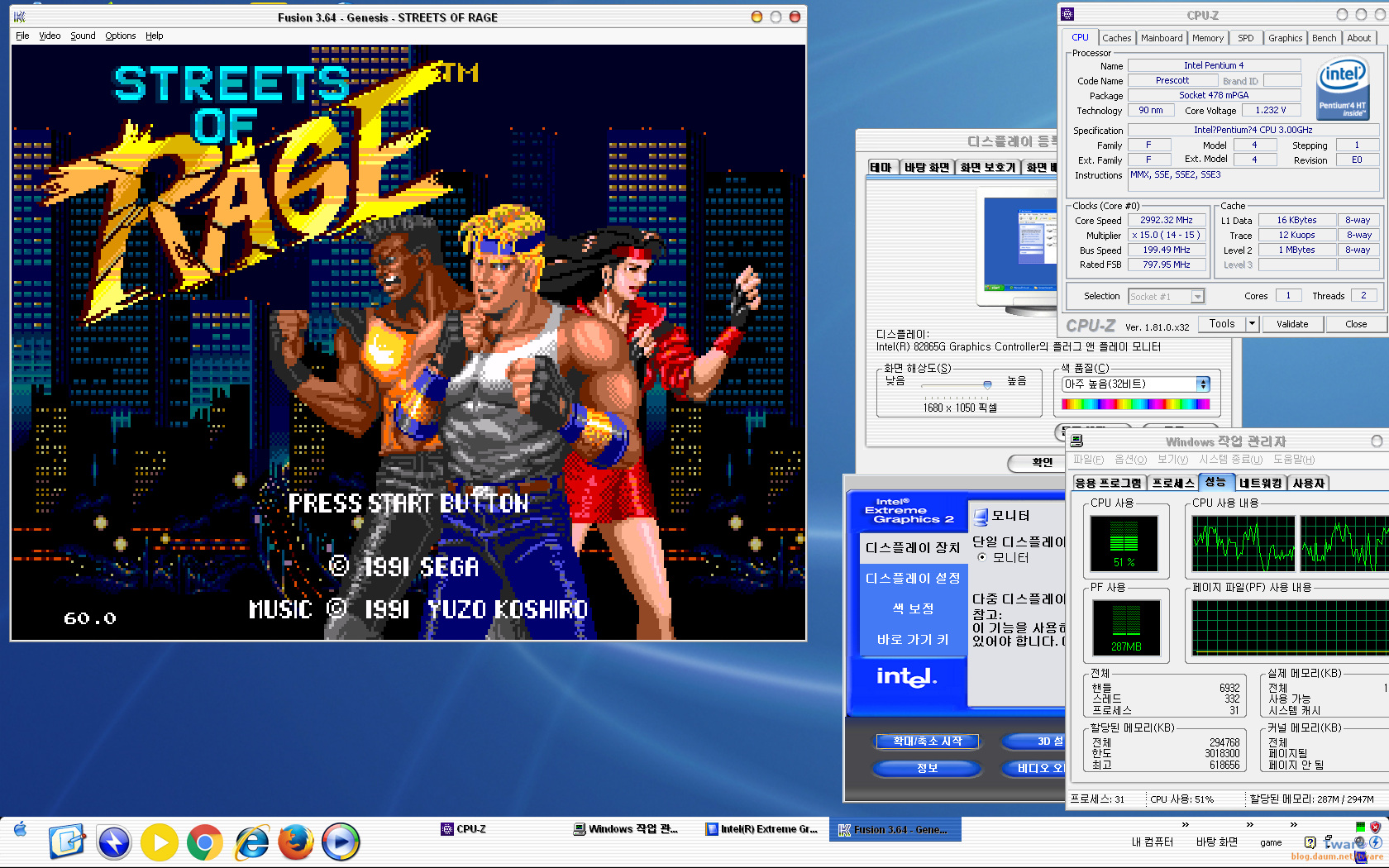펜티엄4 3.2Ghz 프레스캇 865G 내장 그래픽 Extreme Grapics2 케가퓨전 외 에뮬레이터 구동.