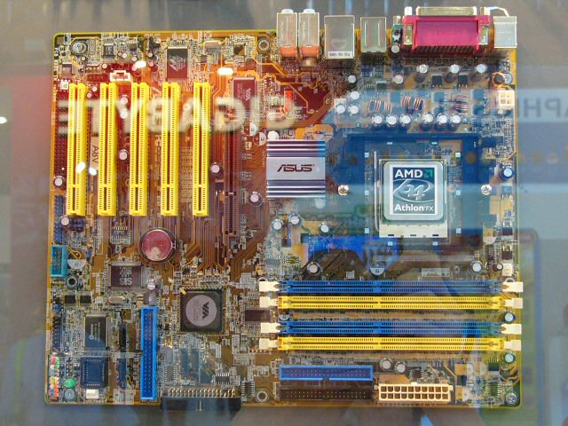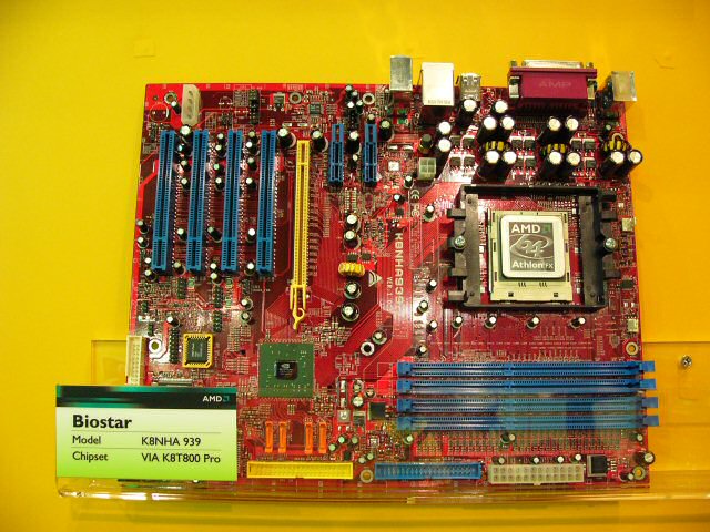 1일에 AMD가 Socket 939용 Athlon 64 / Athlon 64 FX를 발표한 것을 이어 회장에서는 다수의 메인 보드가 전시되었다. 여기에서는 칩셋별로 중요한 제품을 소개한다.